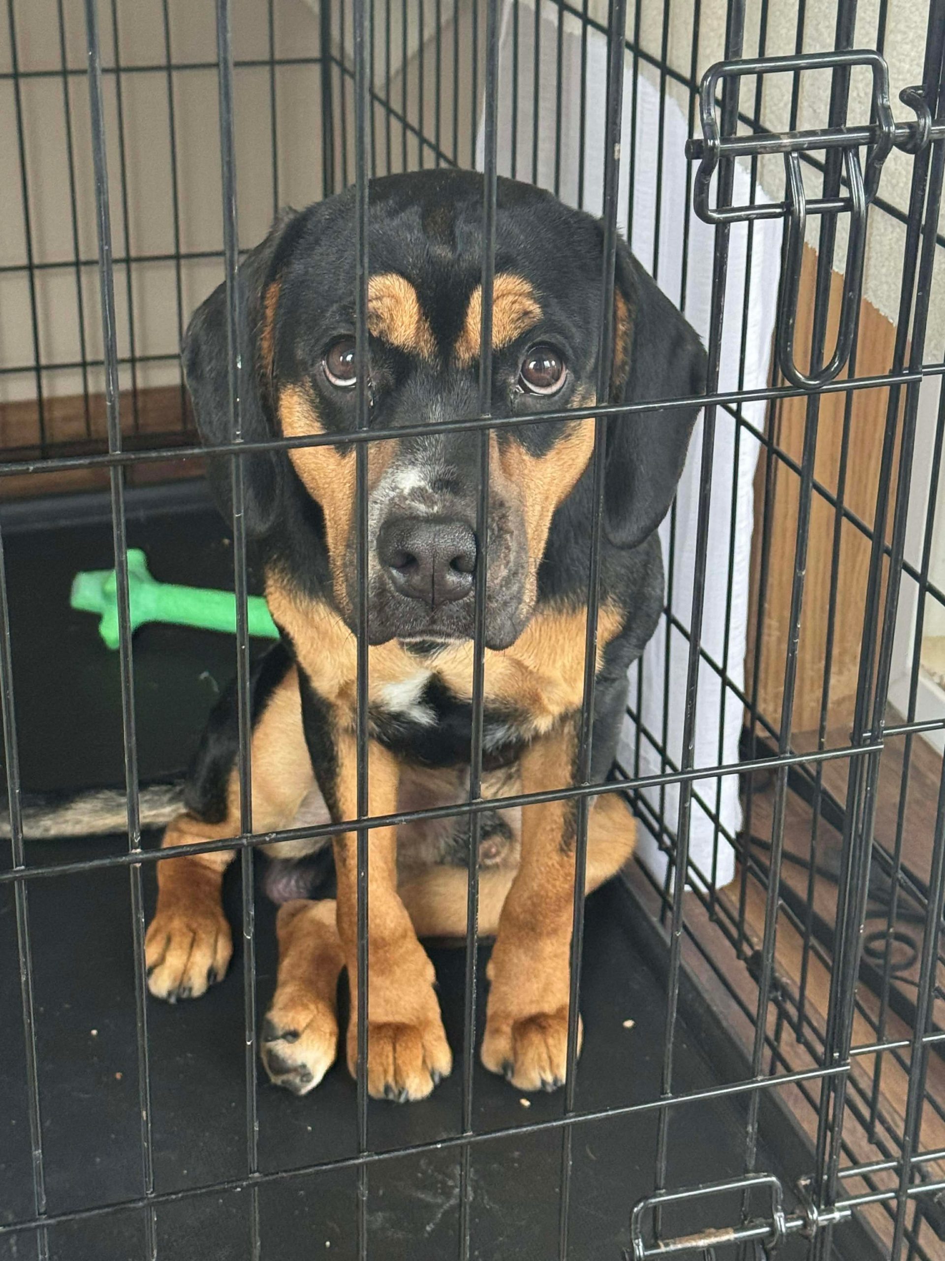 Axel is potty trained and crate trained. Like most puppies his age, he’s a happy-go-lucky, playful goofball who is full of energy and curiosity. He’s still learning his manners and would thrive in a home that’s ready to continue his training, provide structure, and embrace all the fun (and chaos) that comes with a growing puppy. With patience, consistency, and lots of love, Axel is going to make an incredible companion.