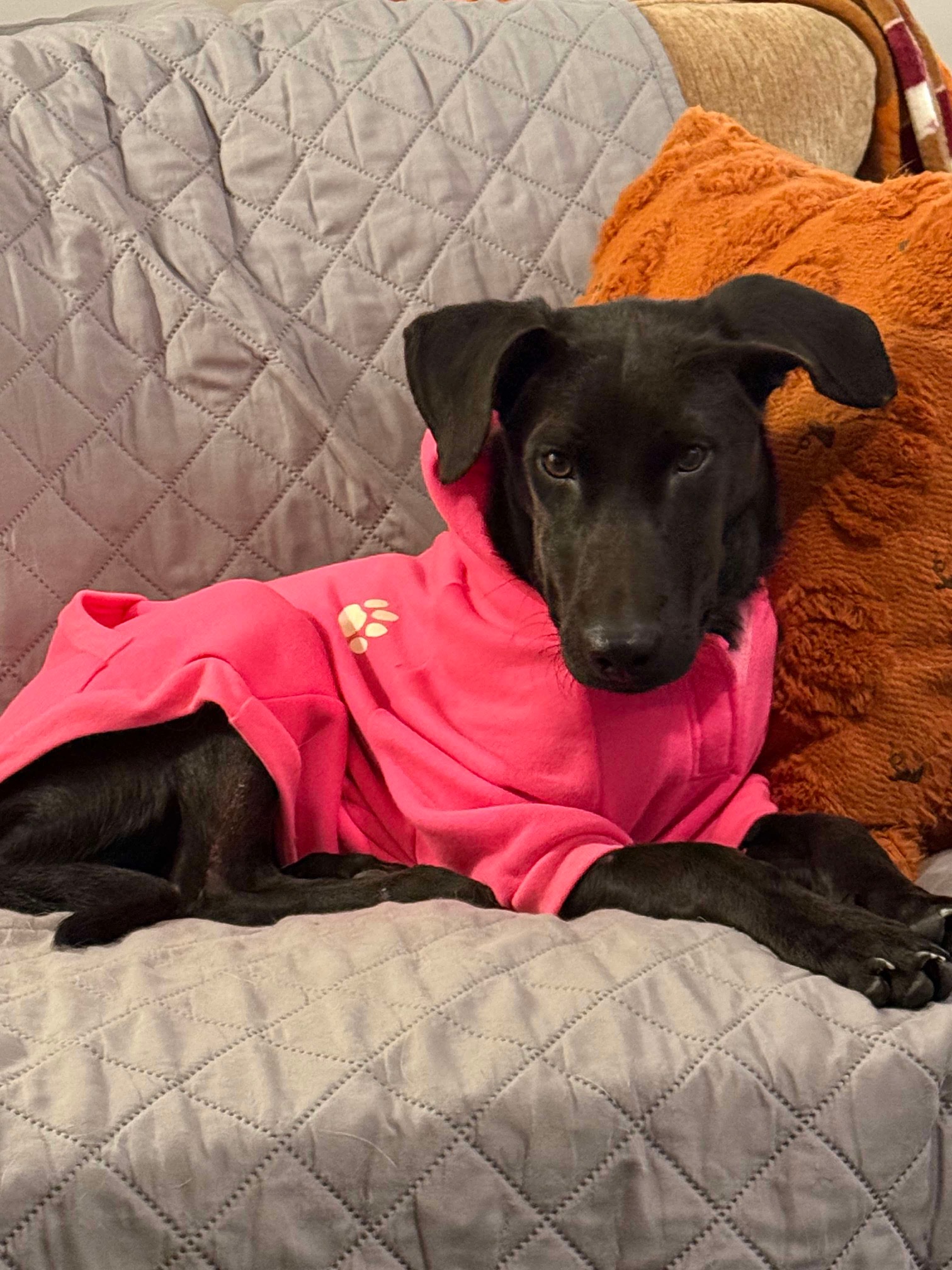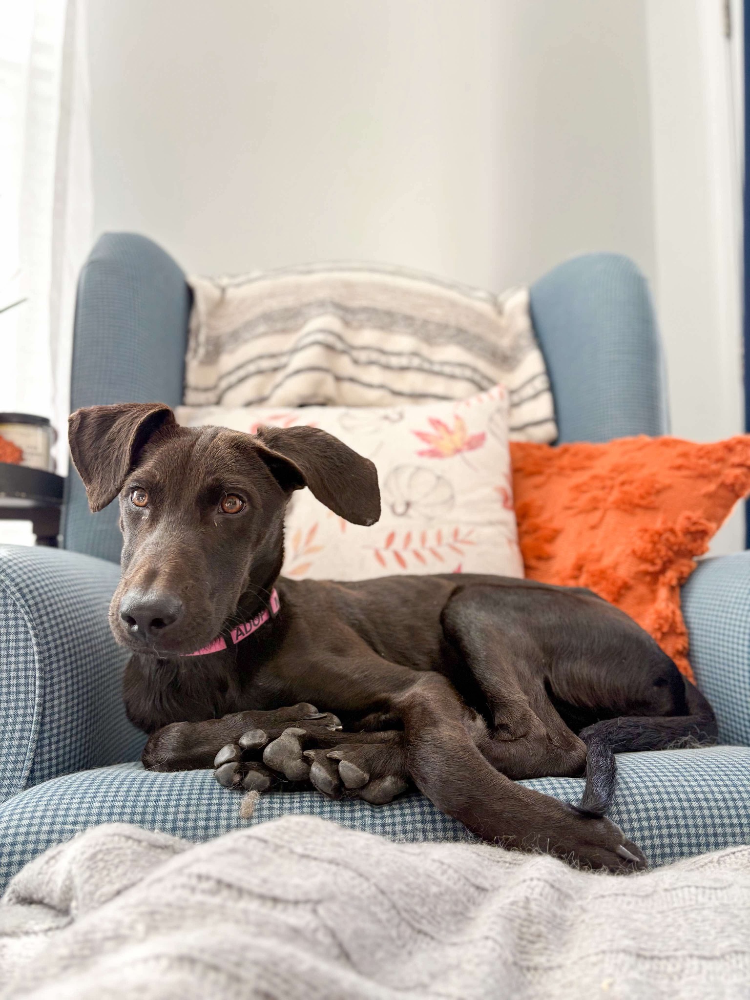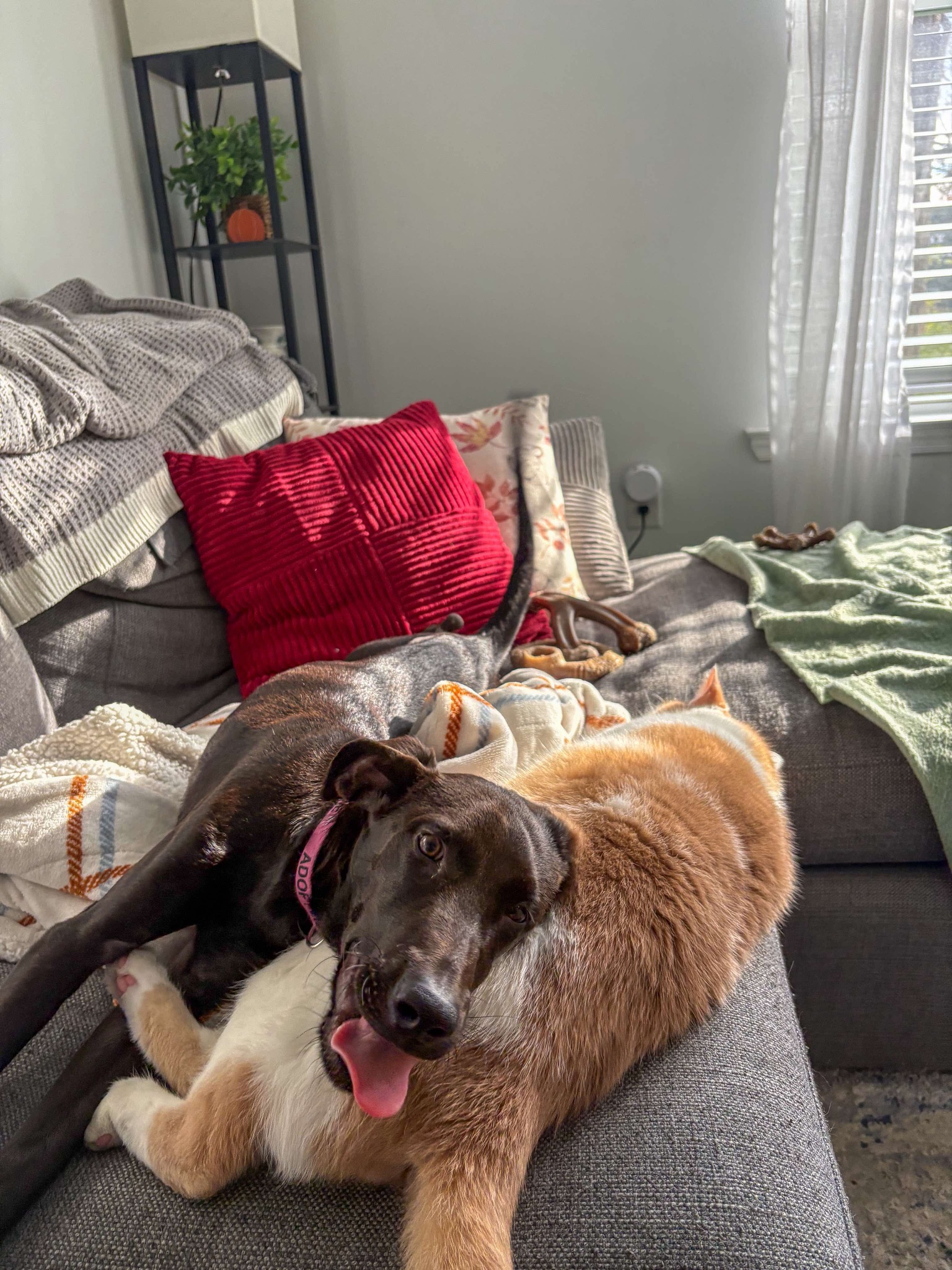 Bonnie has a shy, skittish personality, so we feel she would do best in a home with older, calmer children. Younger kids tend to run around, make sudden noises, and operate at an “Olympic-level chaos” speed which can be a lot for a sensitive pup like her.