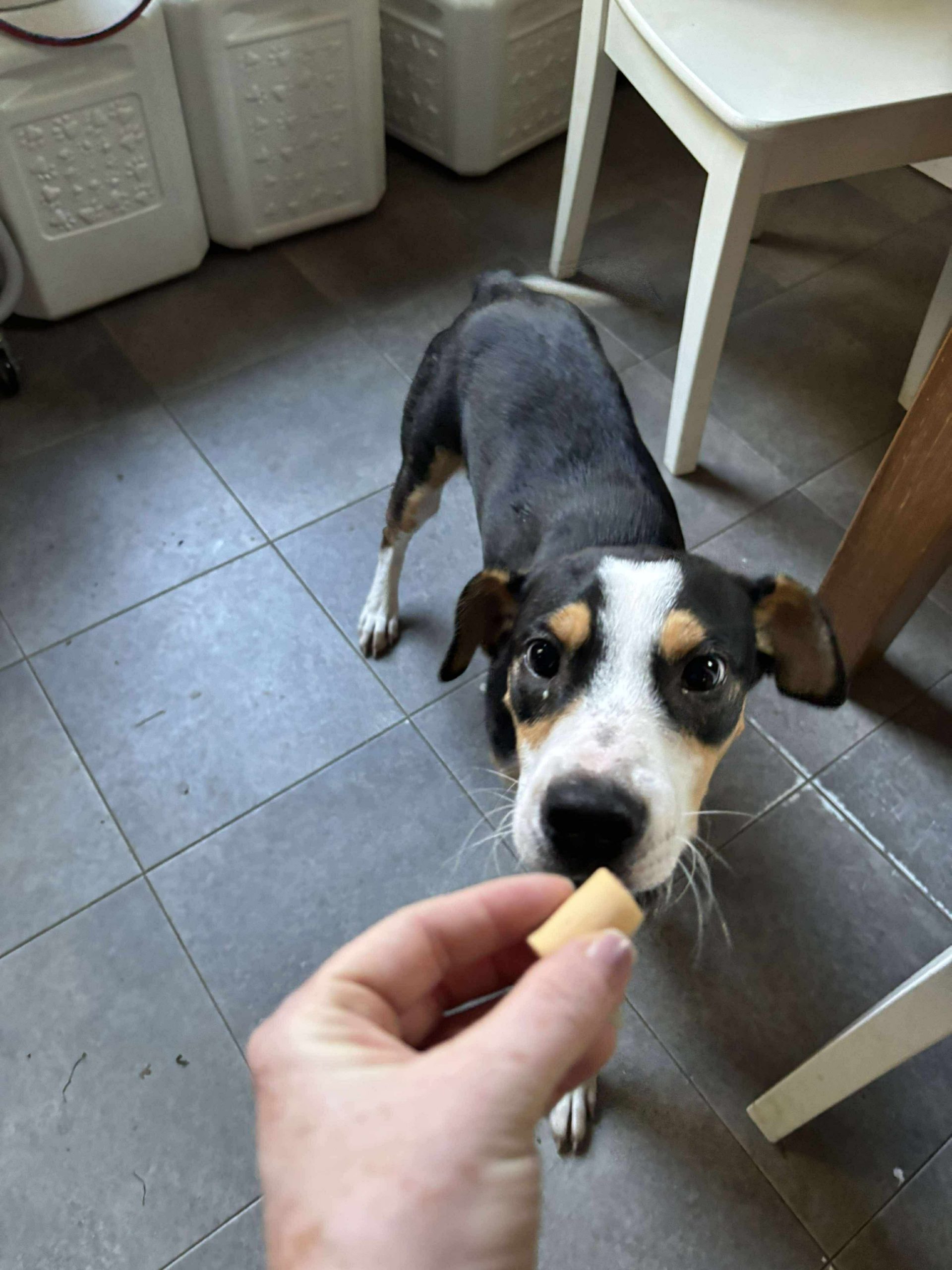 Curly is making steady progress with his crate training and potty training, and he’s eager to keep learning. With patience, love, and maybe a furry sibling by his side, Curly is going to blossom into the most loyal, snuggly companion you could ask for.