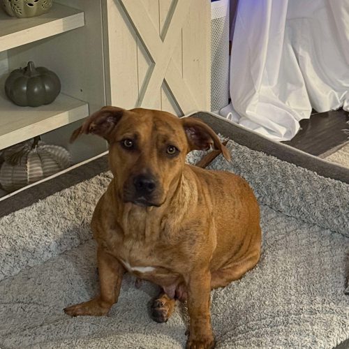 Originally from South Carolina, Della gave birth while at the shelter and has since made her way north in search of a brighter future. She is incredibly sweet-natured and mild-mannered, with a gentle soul that wins hearts wherever she goes. Della is dog-friendly and enjoys the company of other pups. She has not yet been tested with cats.