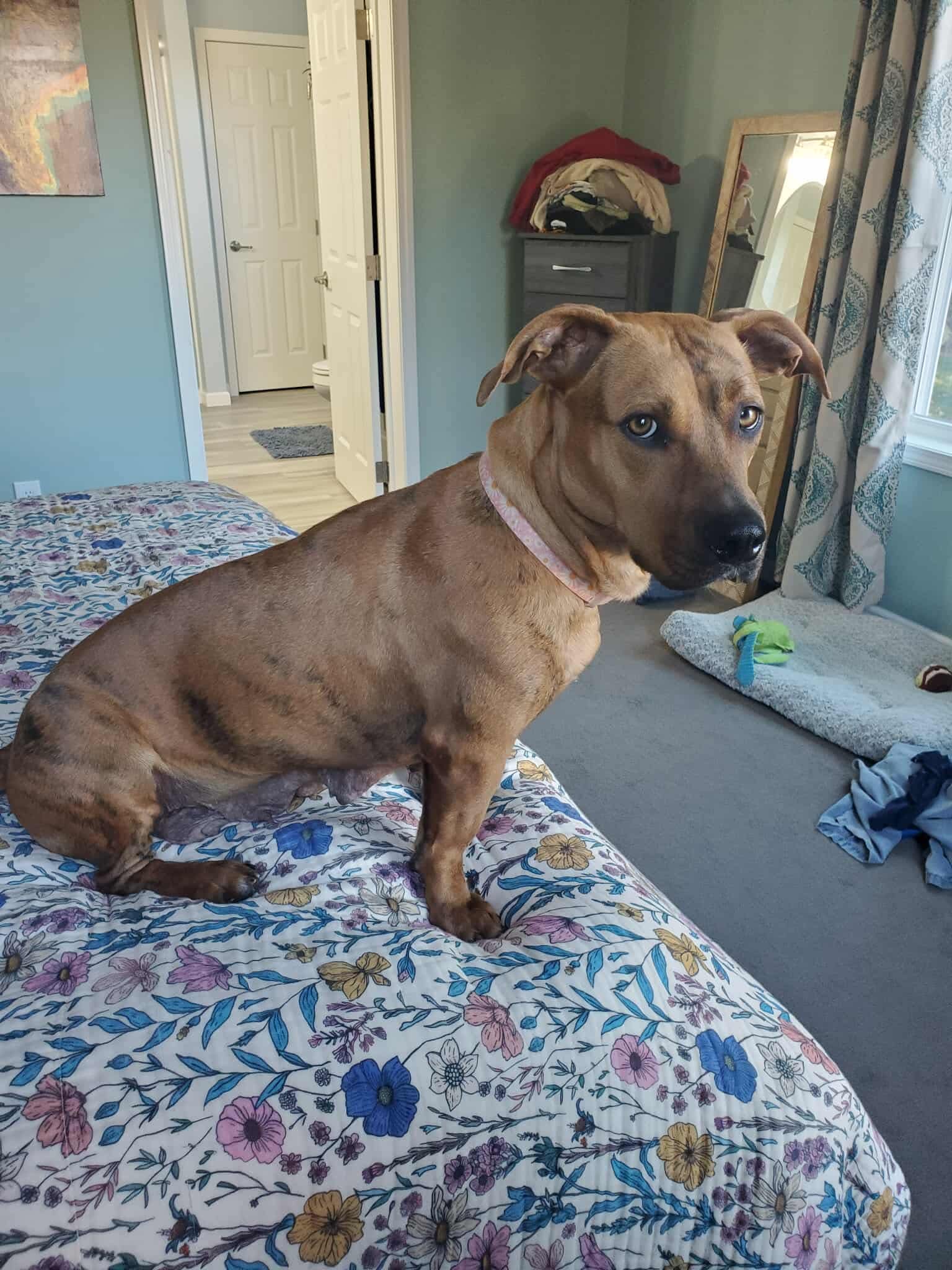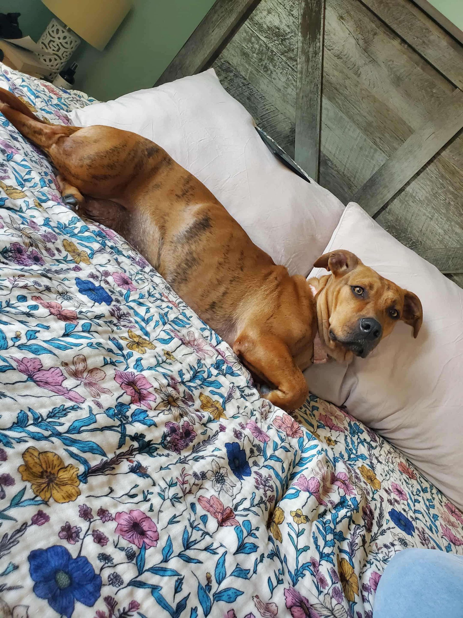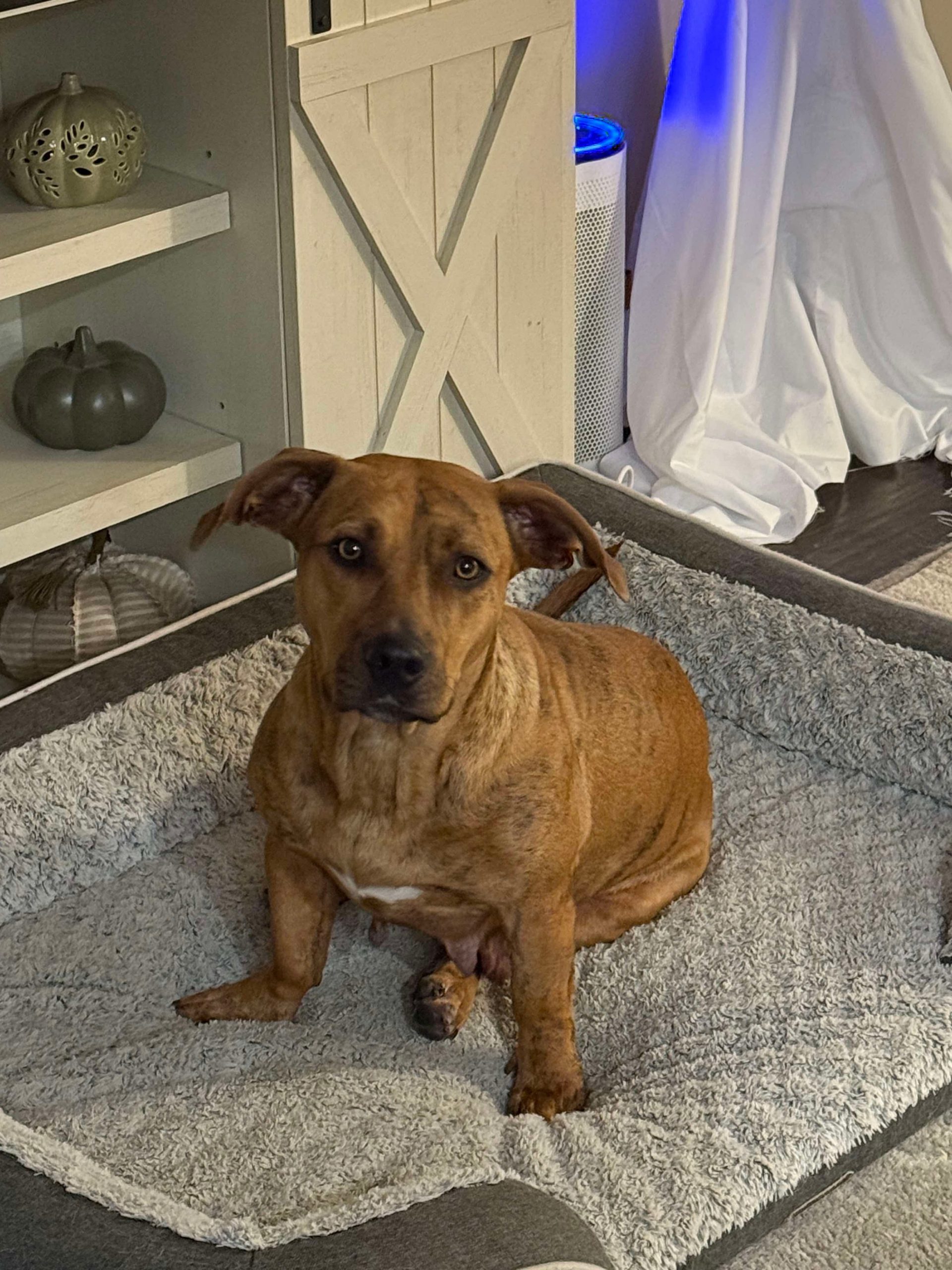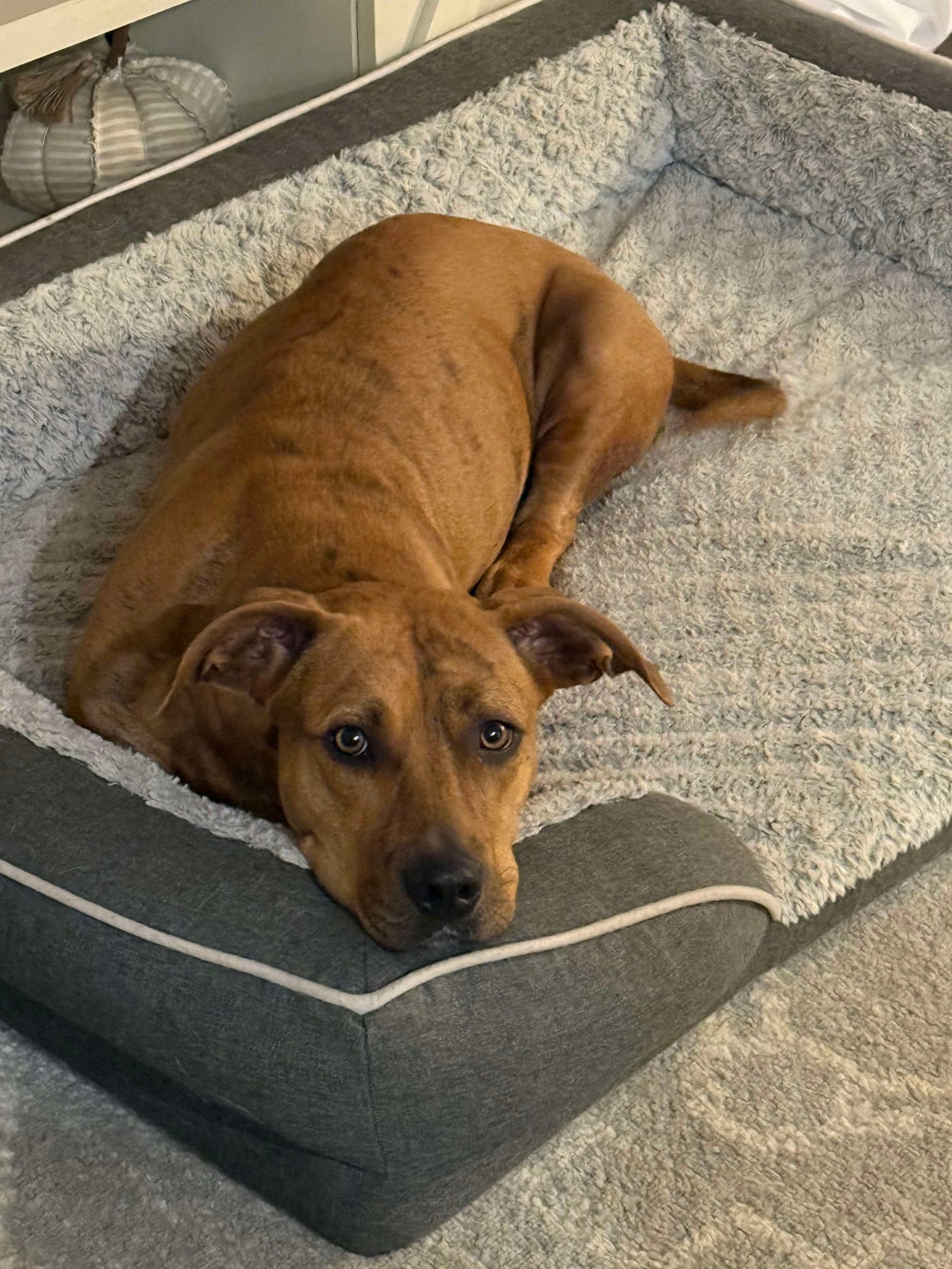 Della is a beautiful three-year-old hound mix who has been through so much but continues to show nothing but love. She’s the proud mama of our Halloween Hound Puppies—all of whom have found their forever homes—and now it’s finally Della’s turn to find hers.
