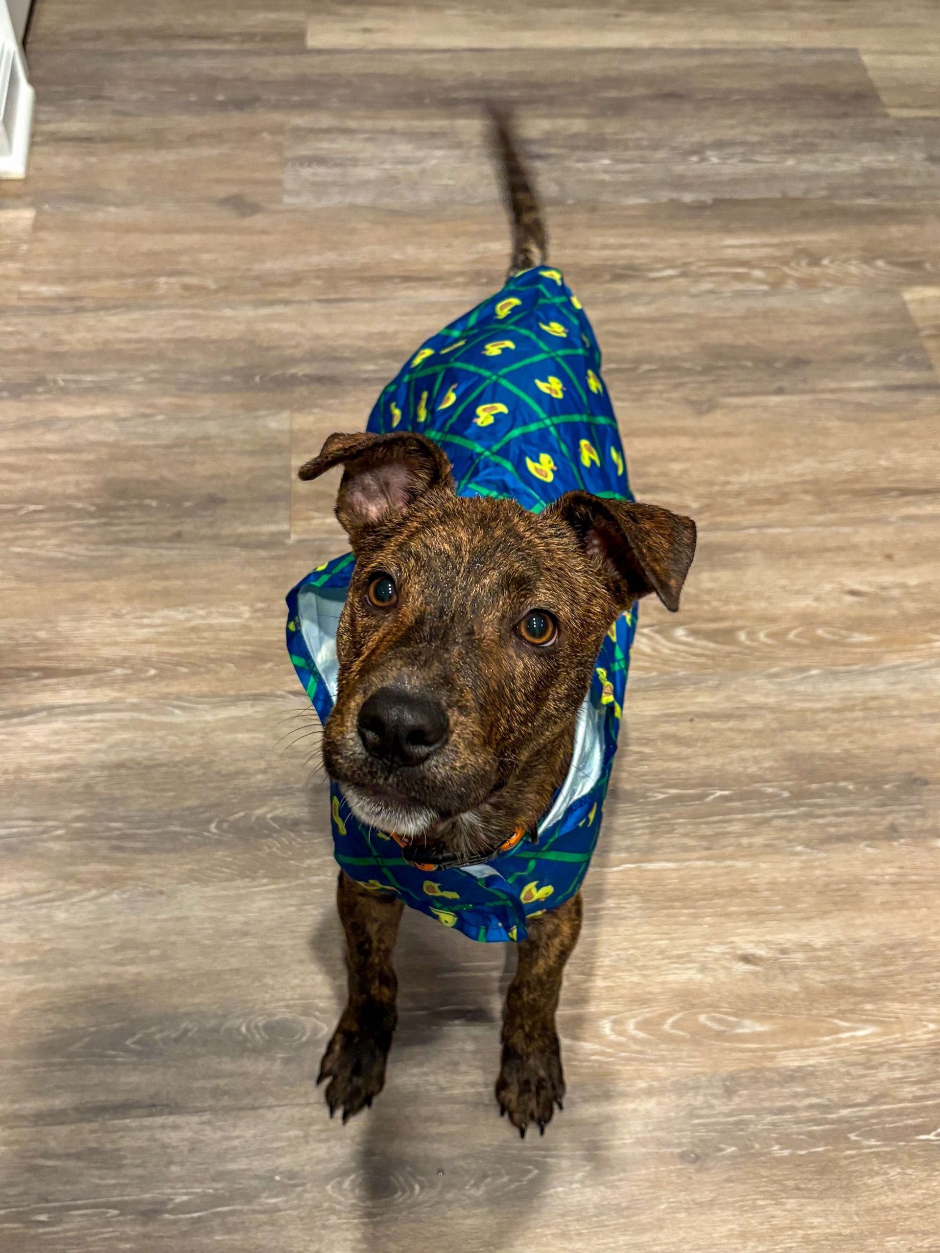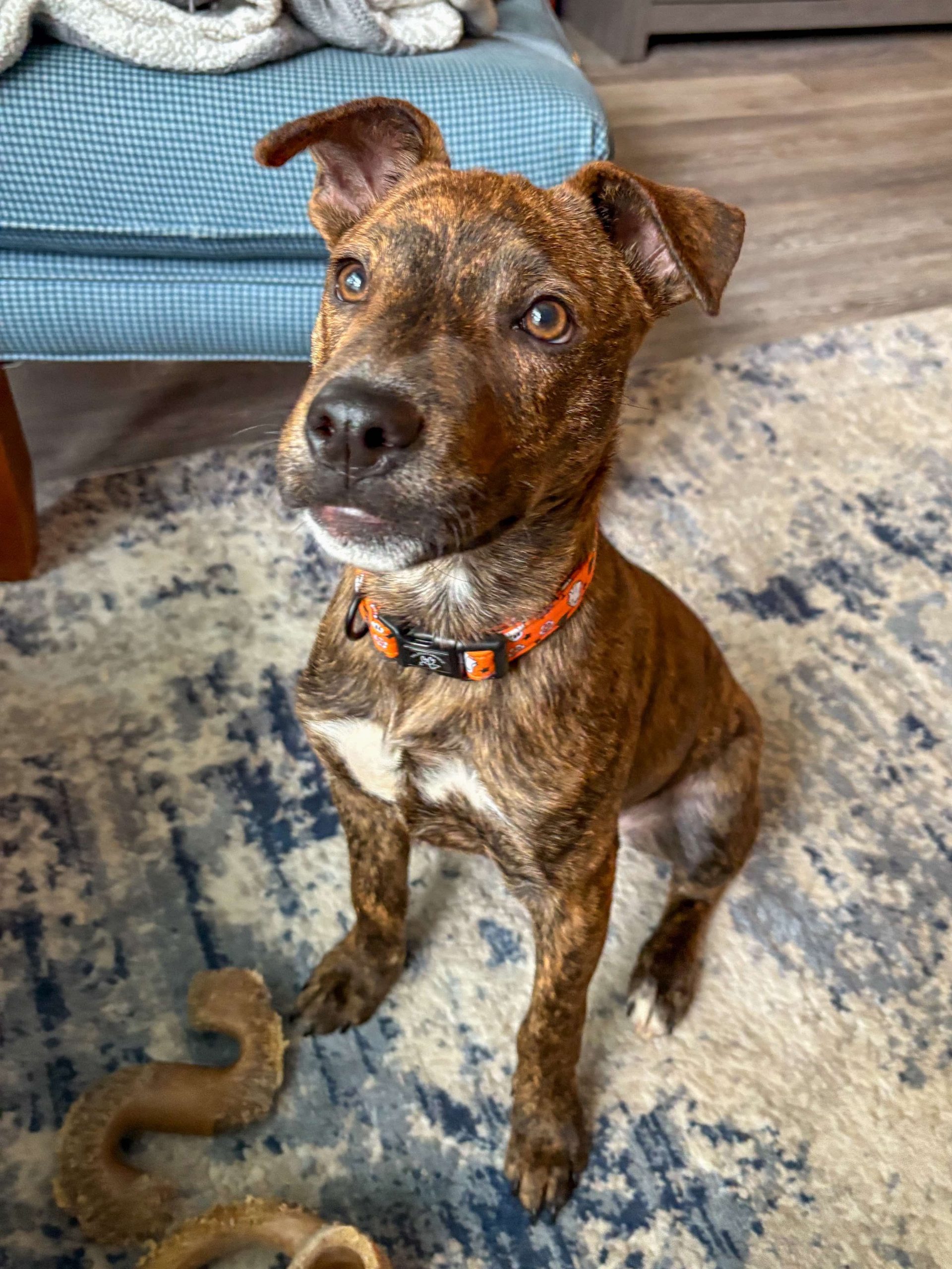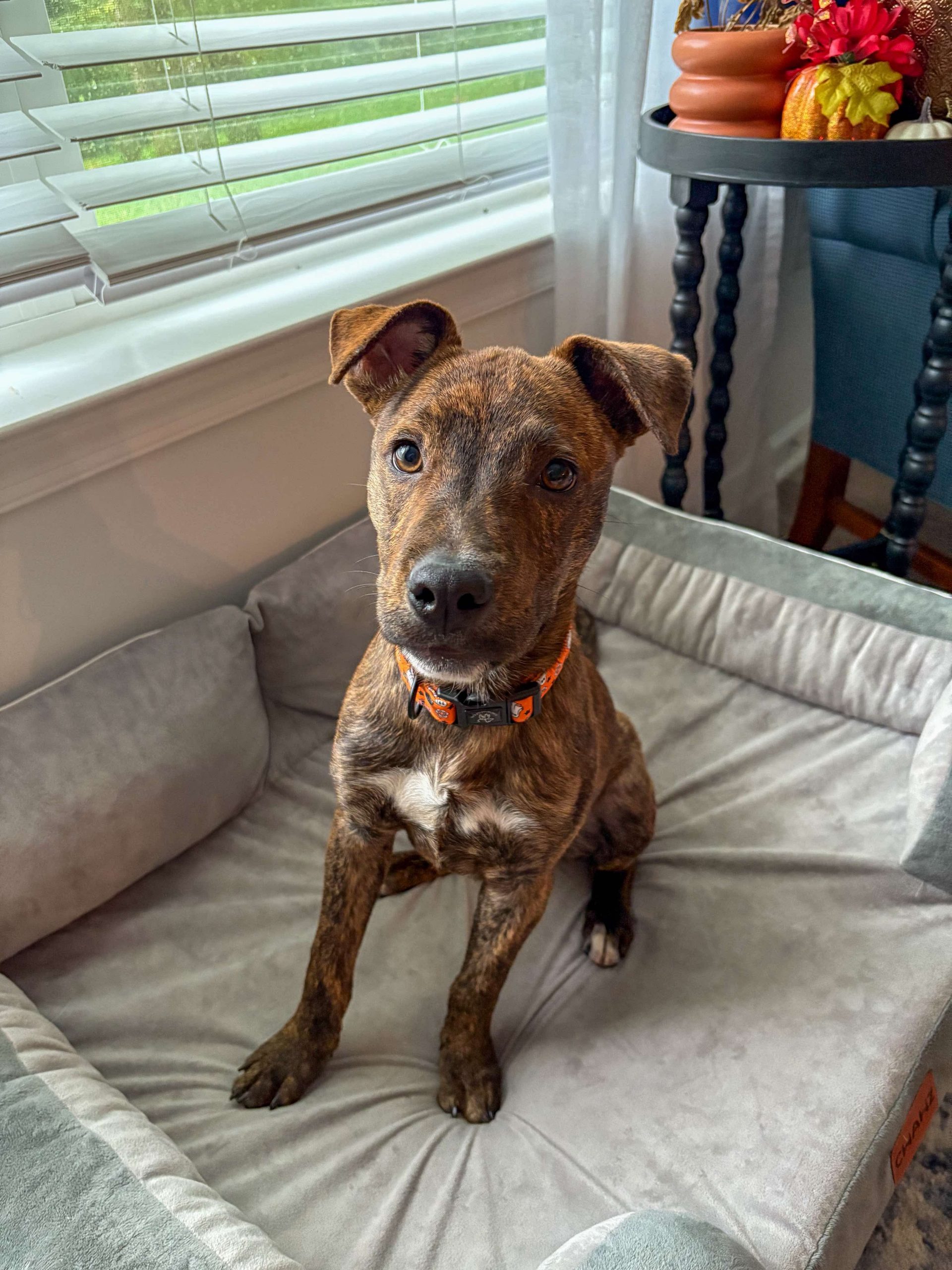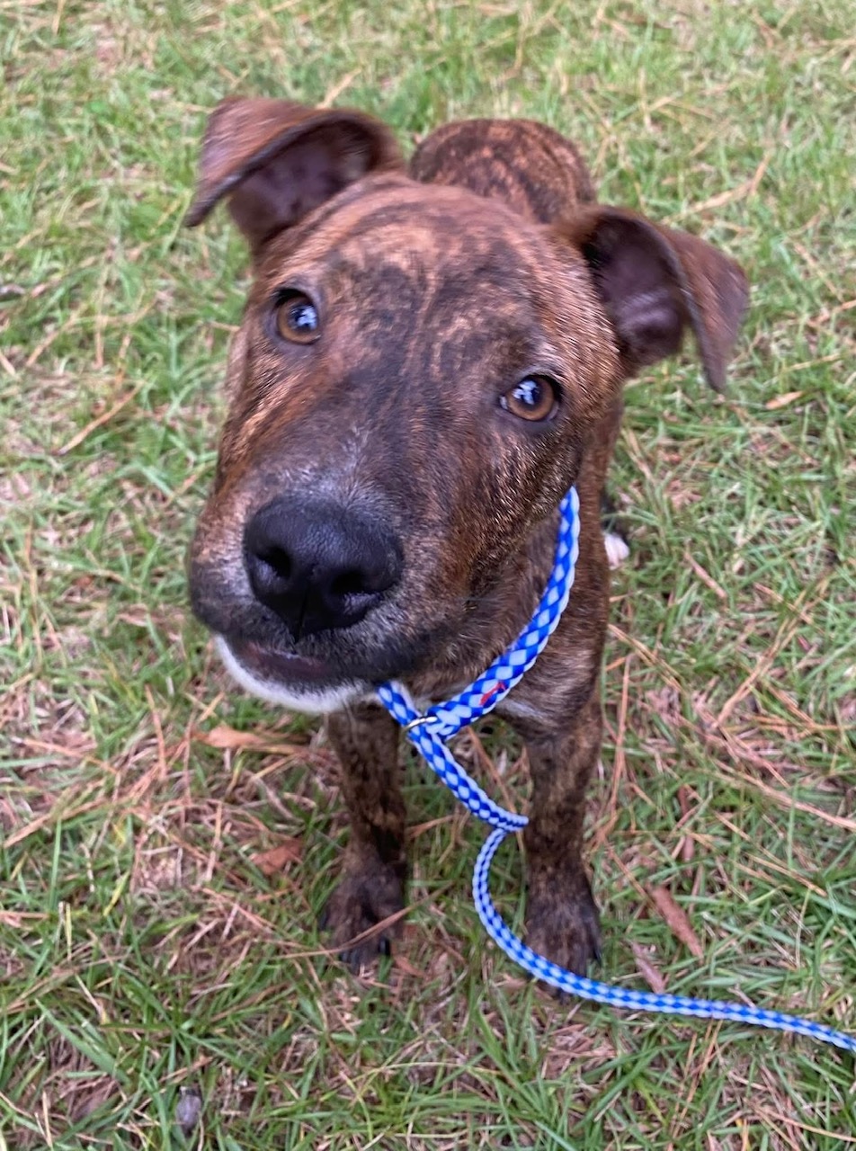 Finley is a handsome 6-7 month old brindle hound mix boy with the sweetest personality. This social cuddle bug is happiest when he’s around people and would thrive in just about any loving home.