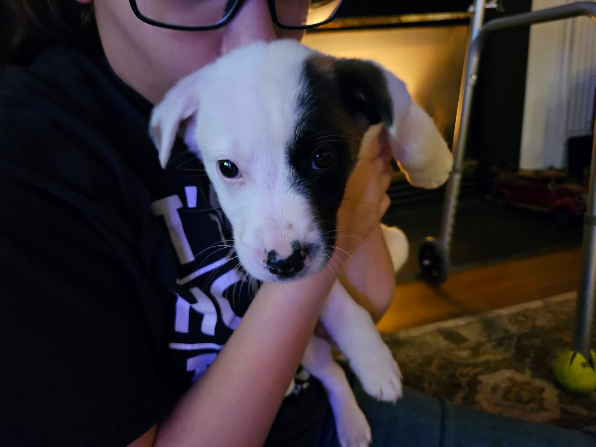 All puppies in this litter are approximately eight weeks old and are currently in foster homes where they are beginning their journeys with potty training, crate training, and basic household routines. As with all young puppies, continued training and consistency will be essential in their new homes as they learn and grow.
