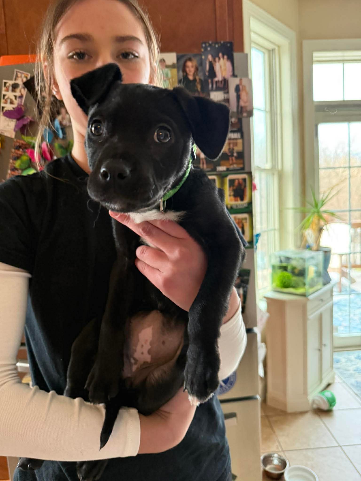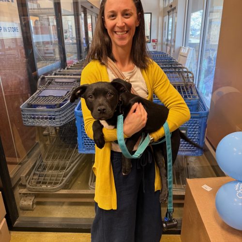 Katniss is settling into foster care where she’ll be working on her basic puppy manners, including potty training, crate training, and learning all the skills she needs to become a well-rounded family companion. She’ll thrive with a family committed to positive, consistent training as she continues to grow.