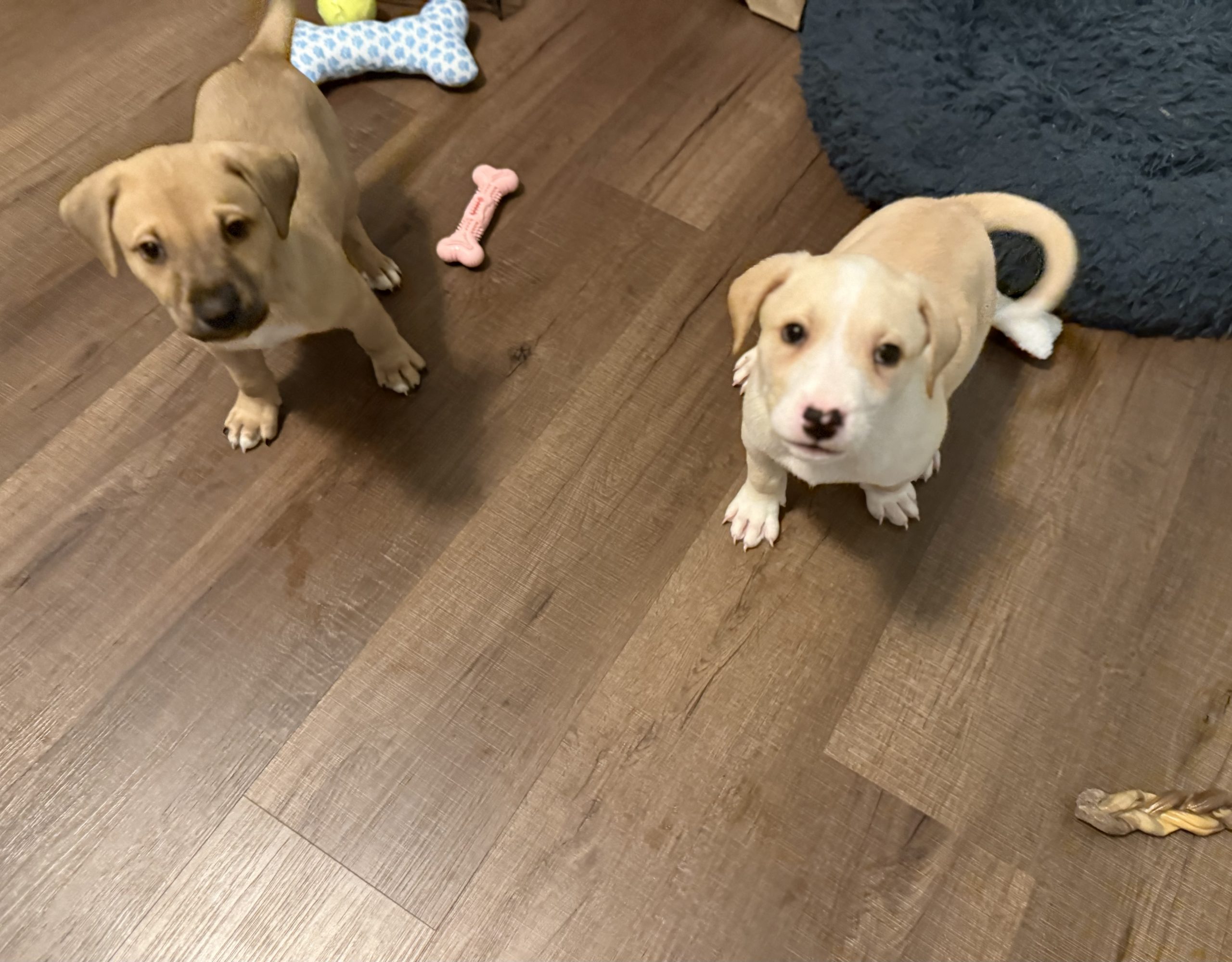 Both puppies will be fully vetted prior to adoption, including age-appropriate vaccines, microchip, and neuter.