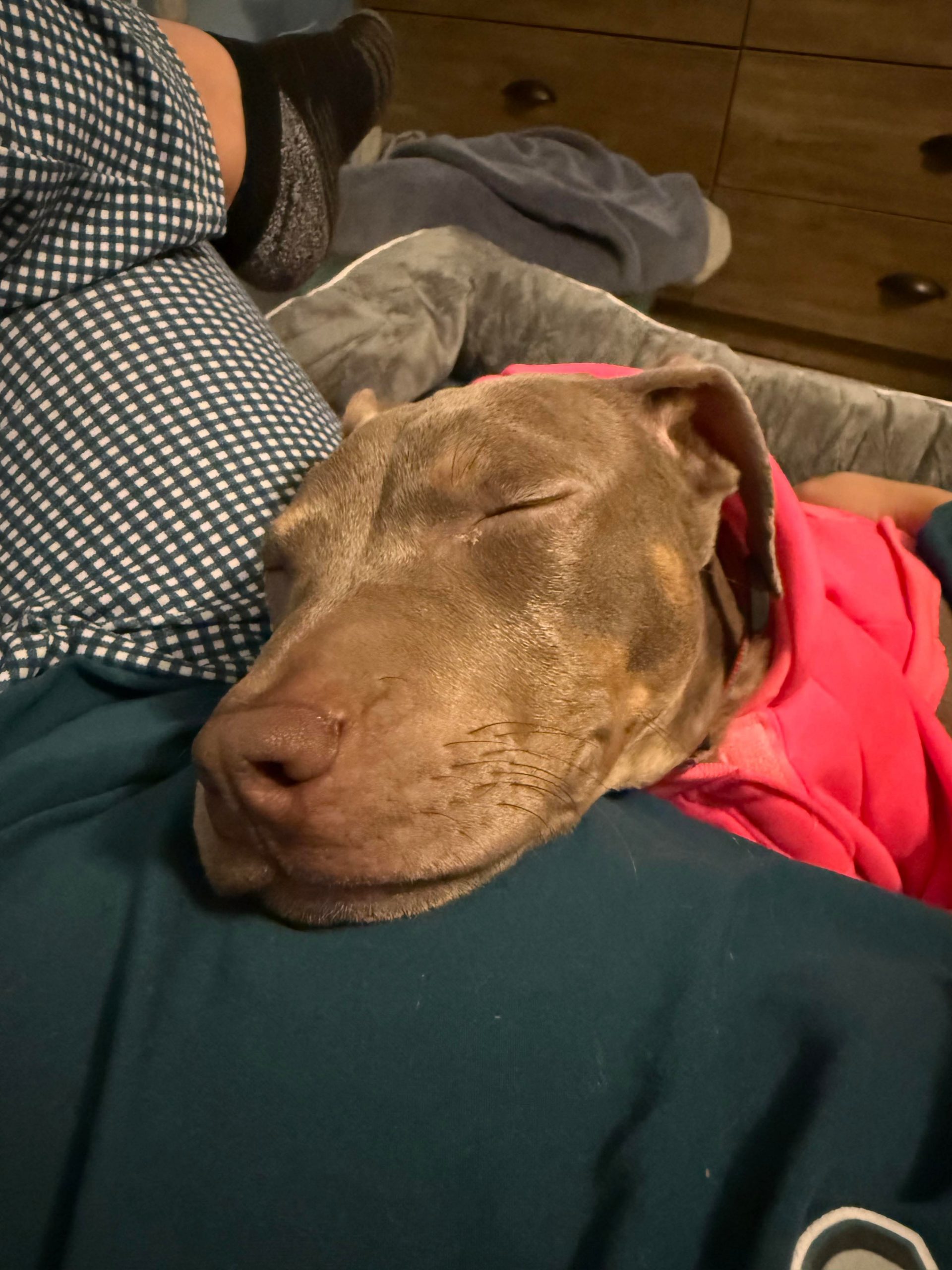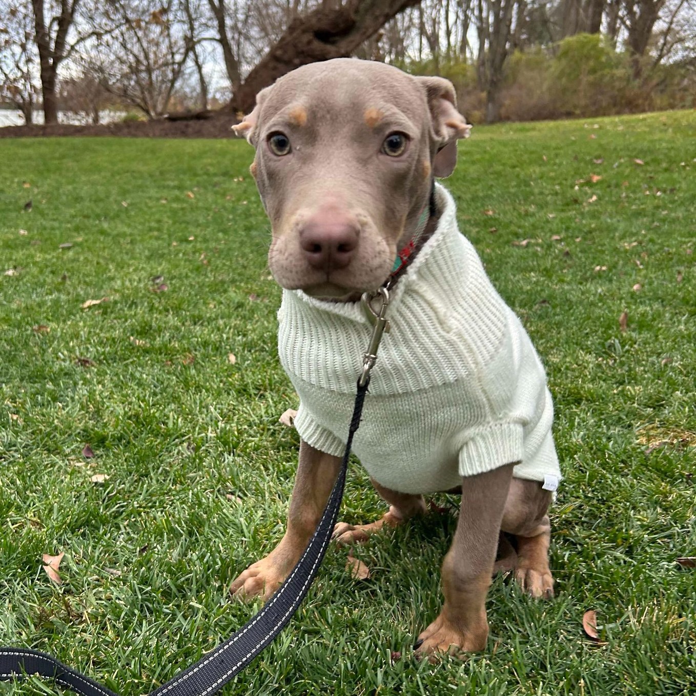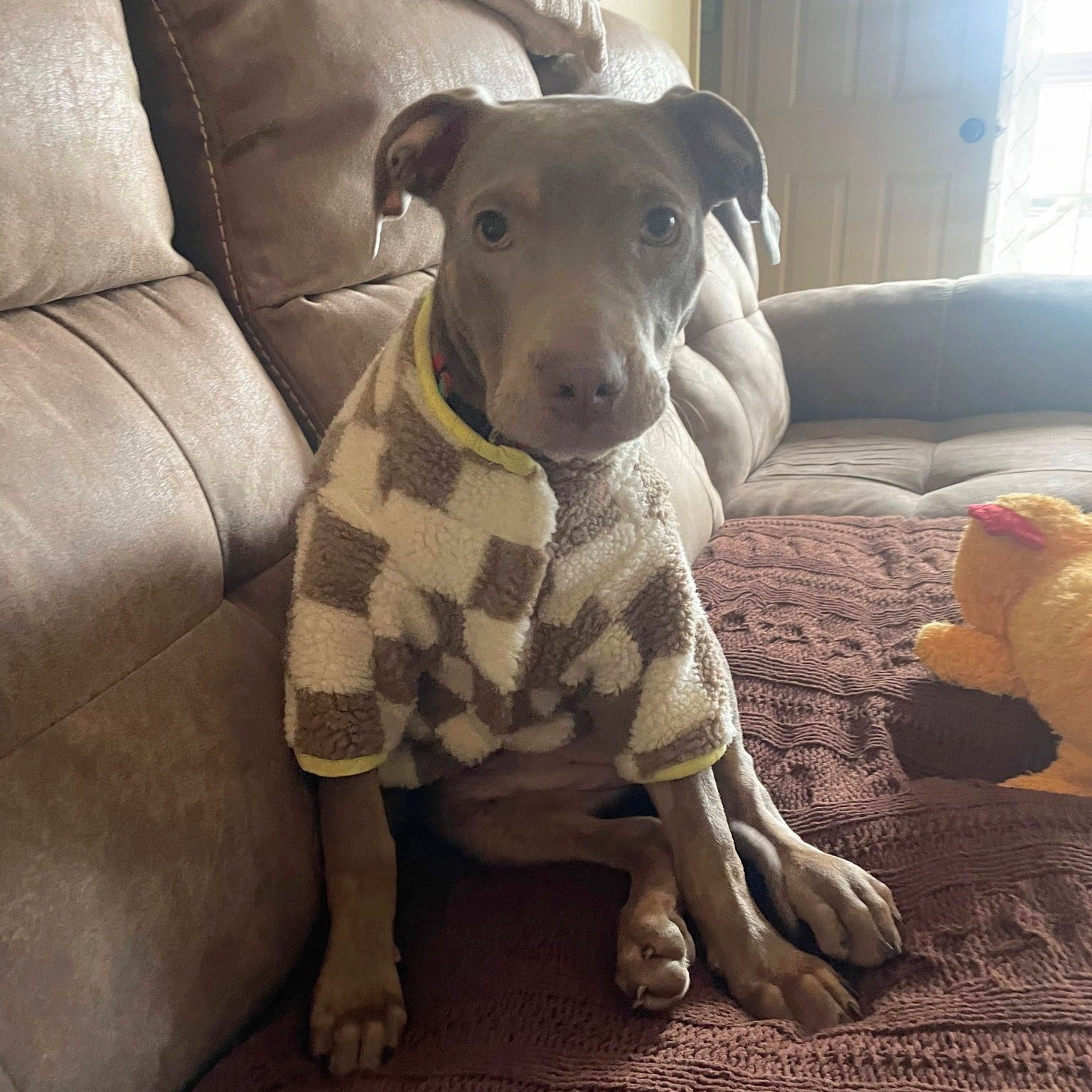 As for breed… your guess is as good as ours! We didn’t get to meet mom or dad, so we’re calling her a mystery mix of Pitbull, Lab, Hound — or whatever your imagination decides. Basically, she’s 100% good girl and 110% lovable mutt.
