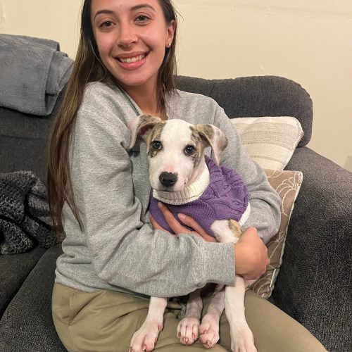 While in foster care, she’ll be working hard on her potty training and crate training, and she’ll be fully vetted prior to adoption. Pecan is ready to start her new life filled with love, playtime, and all the belly rubs she can get.