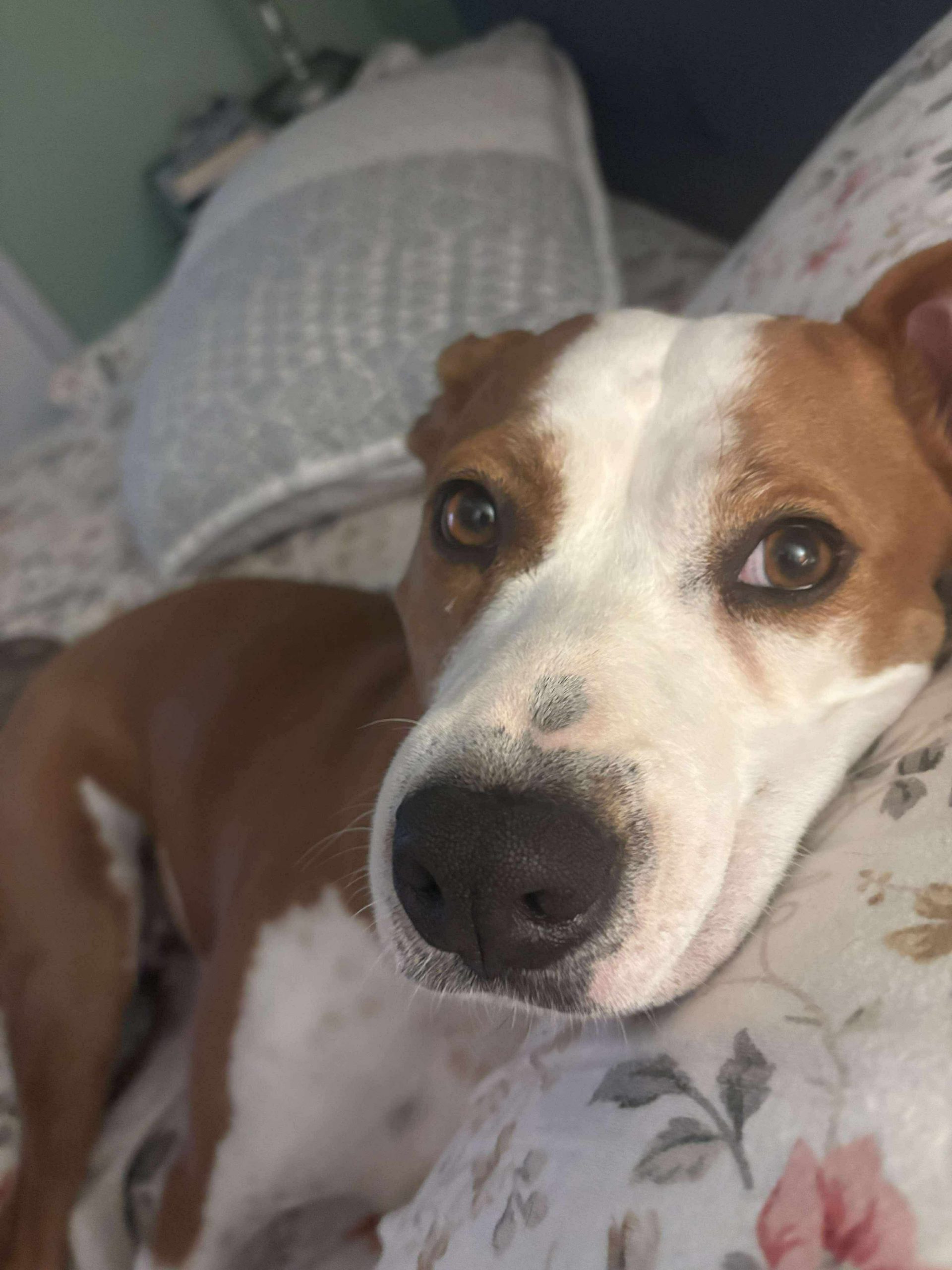 Ruby is a petite pittie mix with a heart full of love for everyone she meets. She is fully potty trained and crate trained, and she enjoys spending time outdoors, playing in the yard, or relaxing by your side after a day of fun.
