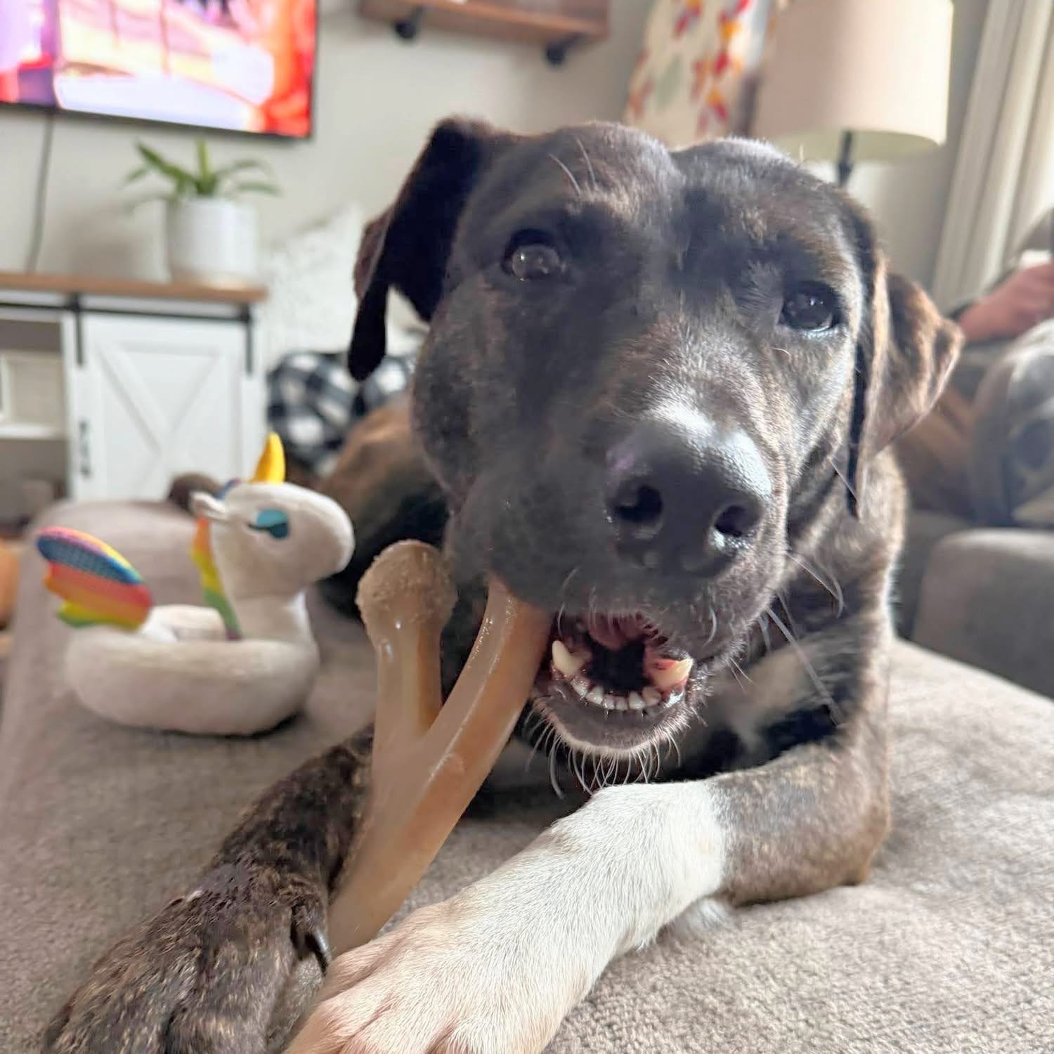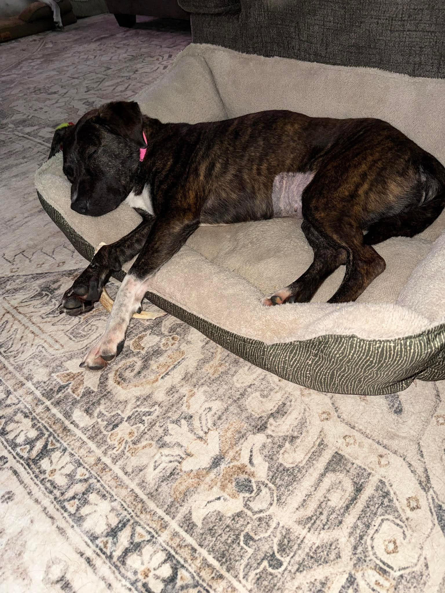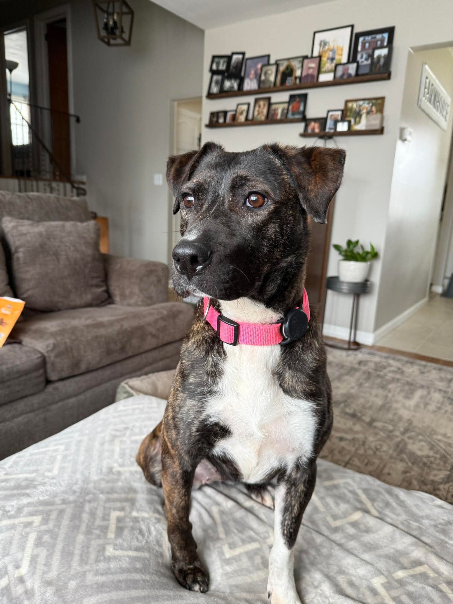 Sable is a beautiful 2-year-old Pitbull/Hound mix with a heart just as sweet as her soulful eyes. This lovely girl has a gentle, easygoing personality and a playful side that really shines—especially when toys are involved! If there’s a toy nearby, you can bet Sable will happily entertain herself or invite you to join in the fun.